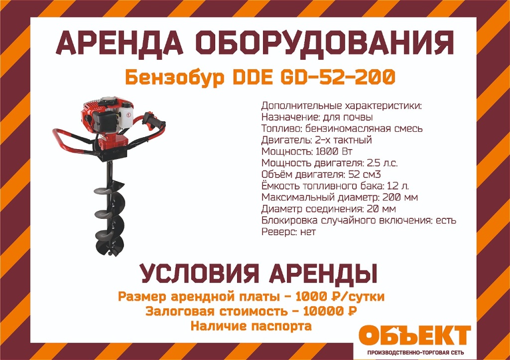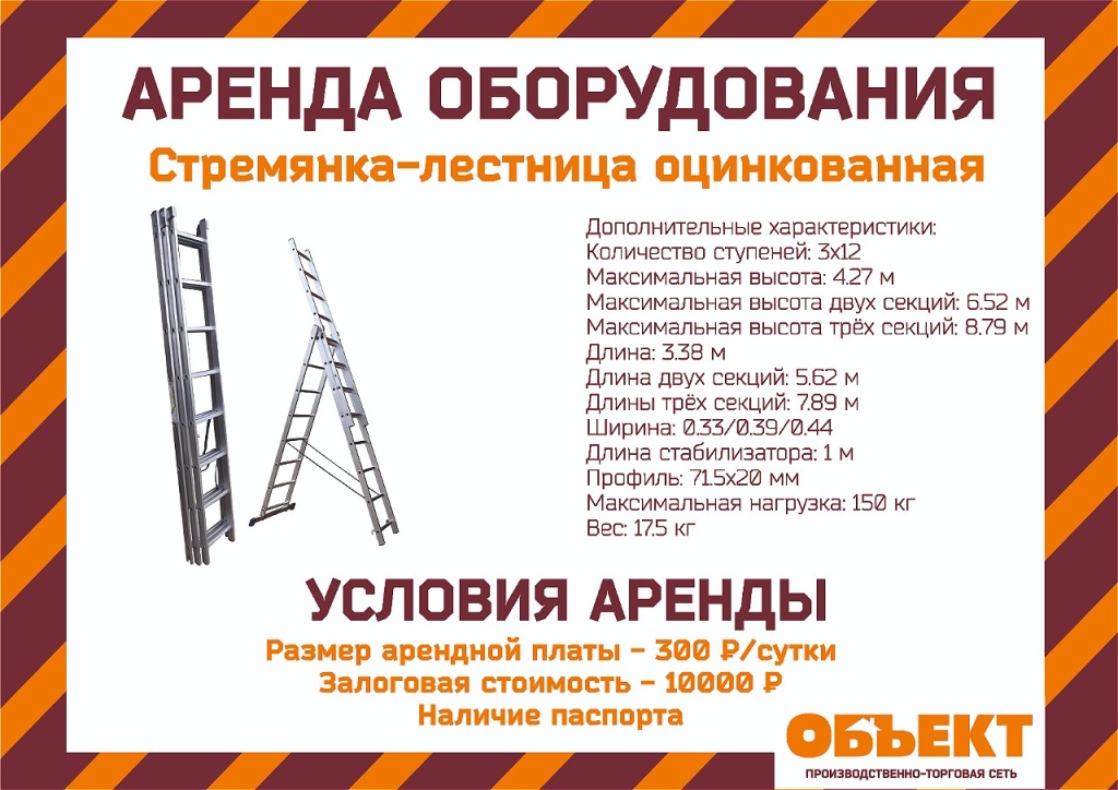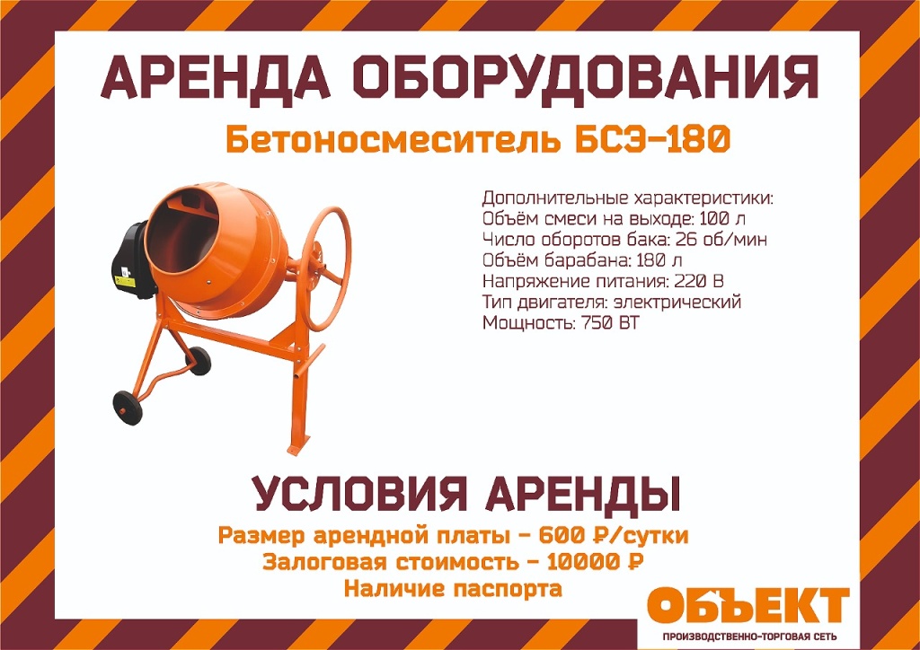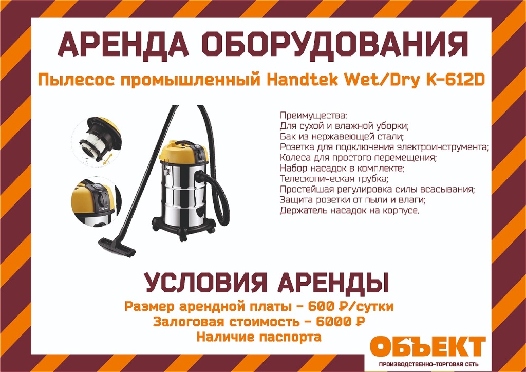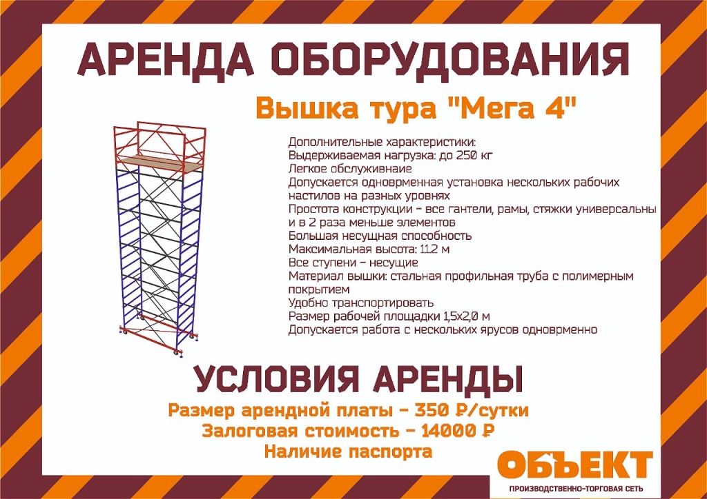 Бывают ситуации, когда необходимо сделать разовую работу, а подходящего оборудования нет. Теперь в ОБЪЕКТ-е Вы можете взять нужное оборудование в аренду и не тратить лишние деньги!